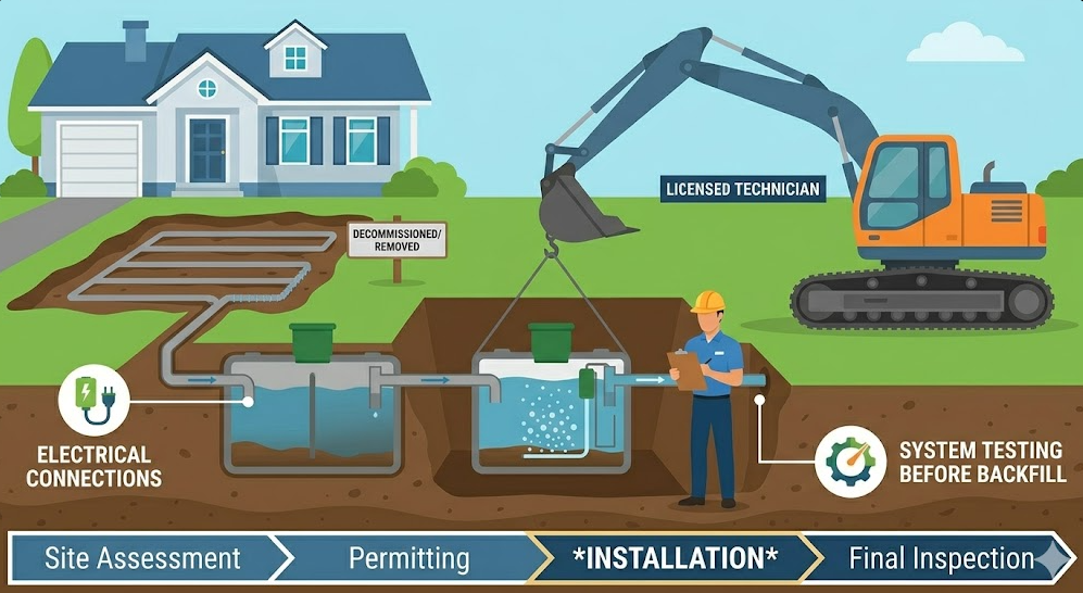 Replacing a sand filter with an Alternative Treatment Technology (ATT) system involves permitting, site evaluation, physical installation, and ongoing maintenance. Each phase has specific requirements that affect how well the final system performs.